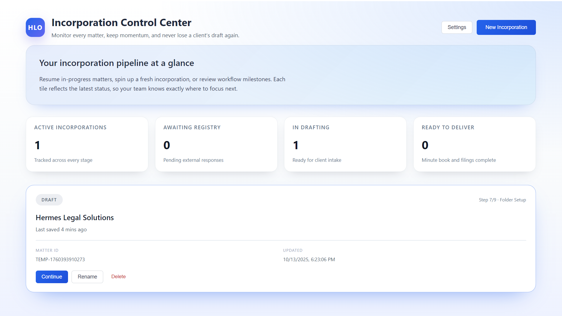 Guided, auditable incorporations for Canadian law firms